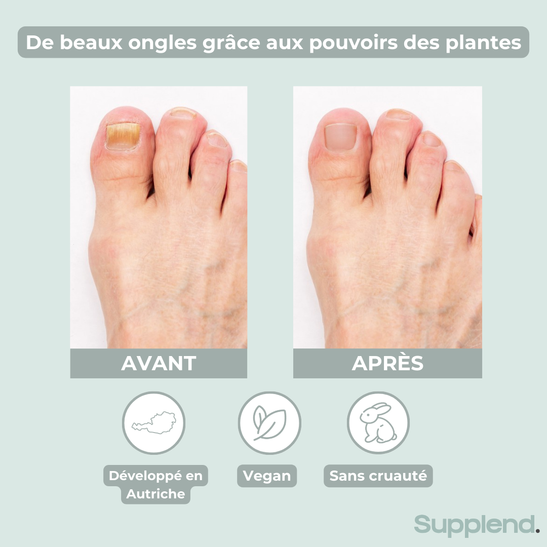 Selon le fabricant, des différences peuvent être observées chez de nombreuses personnes après environ 2 semaines. L'ongle commence à repousser sainement. Cependant, il est important de savoir que la mycose des ongles ne disparaît pas du jour au lendemain. Il faut généralement entre 4 et 8 mois pour que l'ongle repousse sainement et guérisse complètement. Il est important d'utiliser le stylo de soin des ongles Supplend quotidiennement pendant cette période.