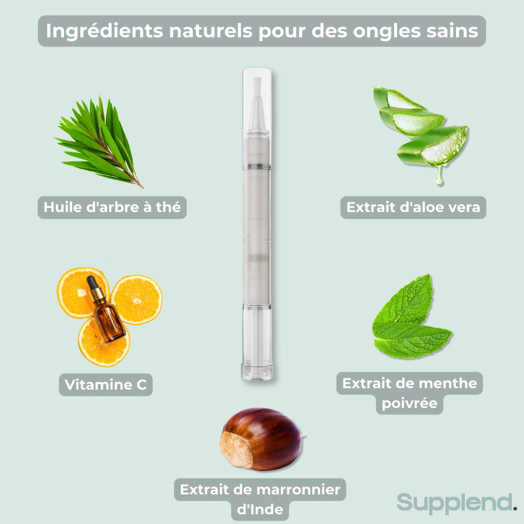 Le stylo de soin des ongles Supplend aide à lutter contre les mycoses des ongles et les ongles cassants et abîmés.